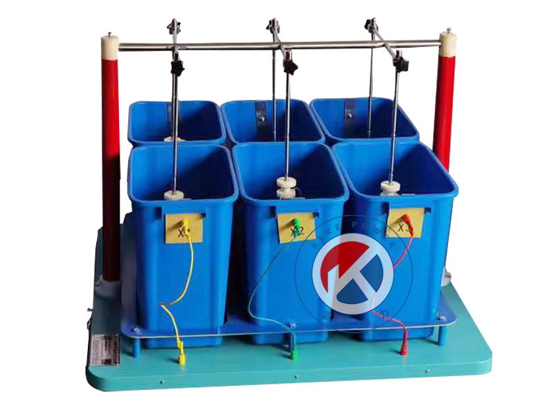 接入0~220V電源,根據(jù)電磁感應原理,使變壓器產(chǎn)生0~100kV工頻高壓至各電極,使絕緣靴(手套、絕緣桿)獲得規(guī)定的試驗電壓,根據(jù)絕緣靴(手套、絕緣桿)試驗規(guī)程,讀取、記錄測試參數(shù)。