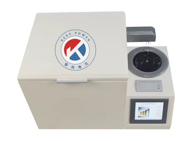 我公司生產(chǎn)的REKE-SR-303A型自動(dòng)水溶性酸測(cè)試儀(比色法)是根據(jù)《GB/T7598-2008運(yùn)行中變壓器油水溶性酸測(cè)定法》及相關(guān)標(biāo)準(zhǔn)設(shè)計(jì)制造。采用大屏幕彩色液晶顯示器,利用微處理器控制,可以根據(jù)用戶的設(shè)定條件自動(dòng)完成加熱、恒溫、振蕩、取樣、測(cè)試、清洗、打印等功能,可以一次性測(cè)量1-3個(gè)樣品,縮短了用戶的測(cè)試時(shí)間,提高了工作效率,減輕了工作人員的勞動(dòng)強(qiáng)度;并支持無線傳輸功能。