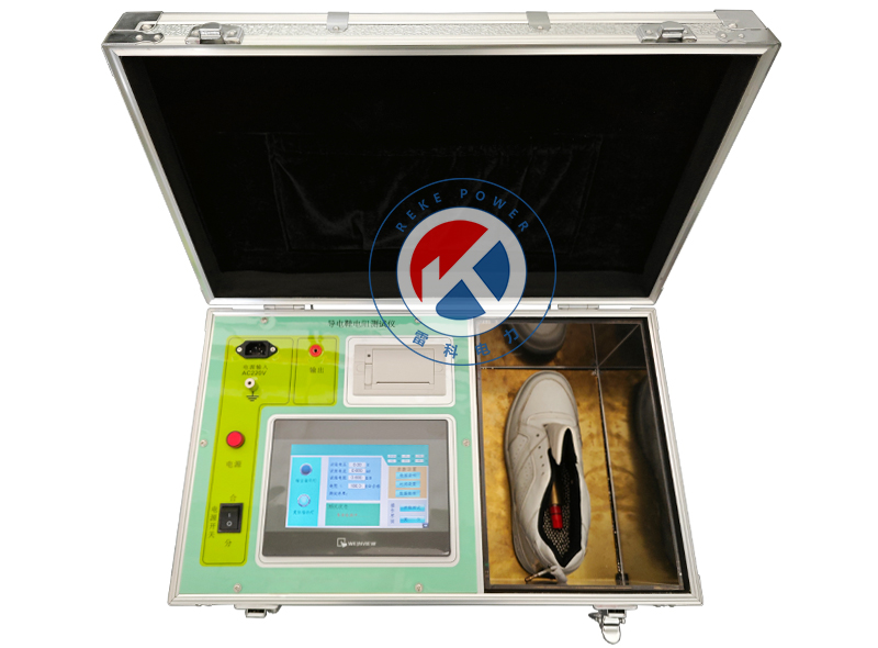 REKE導電鞋直流電阻試驗儀是用于測量電力安全工器具導電鞋的電阻。主要為了發現導電鞋的隱患而進行的預防性試驗。遵照《GBT 6568-2008帶電作業用屏蔽服裝》、《DLT 976-2017 帶電作業工具、裝置和設備預防性試驗規程》要求,導電鞋的的電阻不大于500Ω。不僅制造廠在出廠時須按這一標準檢驗,合格后才能出廠。在實際使用時也須按這一規程定期檢驗,合格后才能穿用。